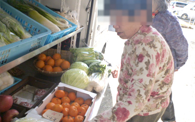 当ホームの庭を借りて行われる毎月の物産展。